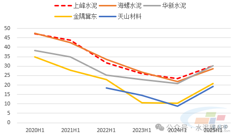 尽管水泥熟料综合销量出现下降,但得益于煤炭采购价格下跌和精细化管理促使可控成本下降,2025年上半年公司水泥熟料综合毛利率达到30.1%,较去年同期提升6.7个百分点,绝对毛利率水平略微低于华新水泥(主要海外带动),超过国内多数主要上市公司,在行业中处于领先地位,水泥产品盈利能力较强。