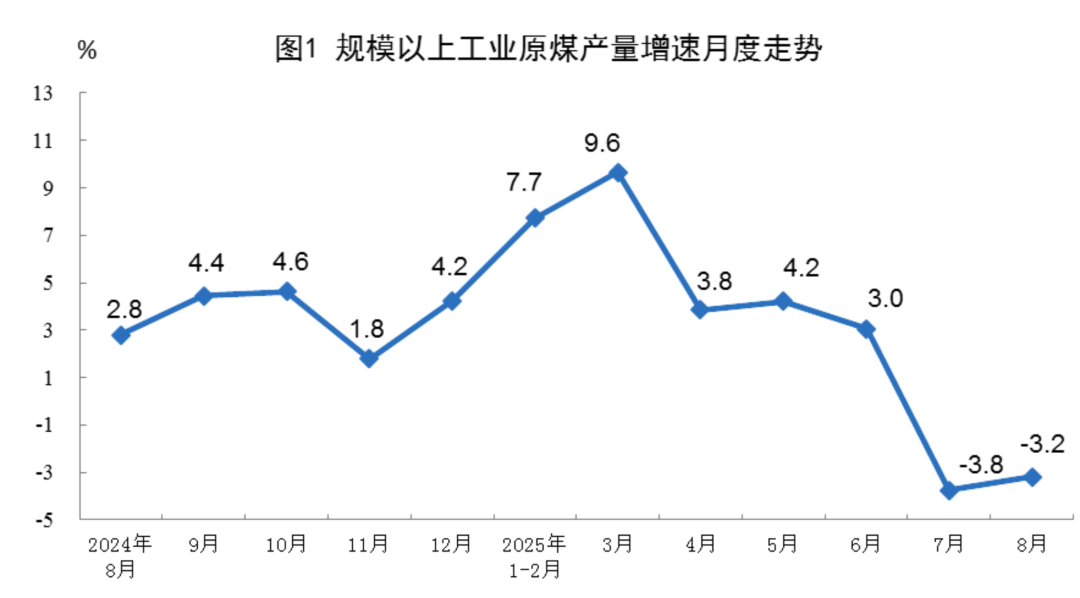 1-8月份,规上工业原煤产量31.7亿吨,同比增长2.8%。