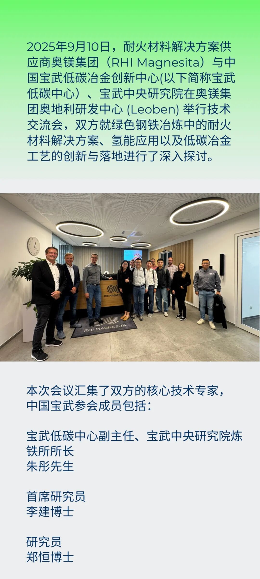 聚焦绿色钢铁转型:奥镁集团与宝武低碳中心、宝武中央研究院举行技术交流会,共探低碳未来