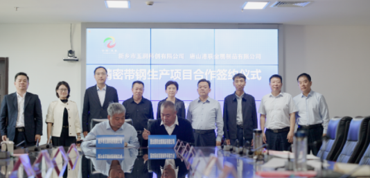 9月29日上午,新乡市玉润科创有限公司与唐山港联金属制品有限公司合作的港联精密带钢生产项目签约仪式在凤泉区举行。唐山港联金属制品有限公司董事长孟德龙、新乡市玉润科创有限公司总经理王玉军、新乡农商行凤泉支行行长贾万丁及区直相关部门负责人出席活动,区委书记杨洁主持仪式,区长丁文广、副区长耿建伟参加。