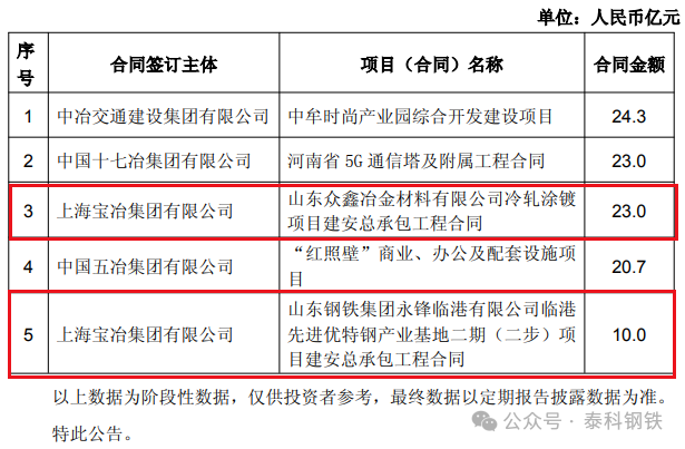 中国中冶5月新签单笔合同额在人民币10亿元以上的重大工程承包合同项目: