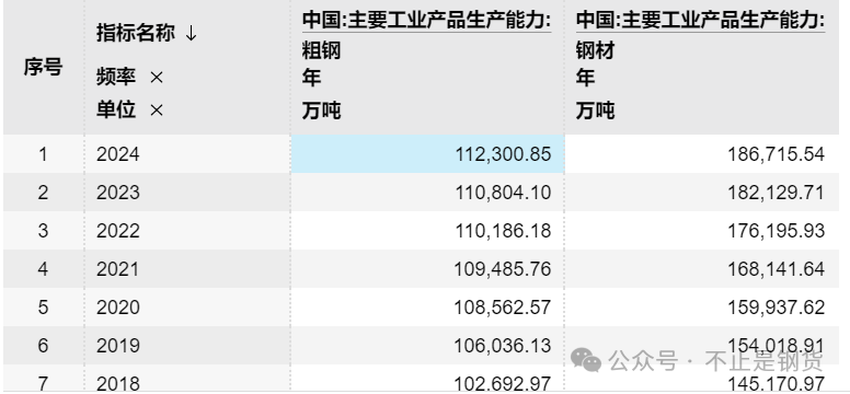 全国钢材产能在2024年再创历史峰值至18.7亿吨、较2018年增加4.3亿吨,较2015年增加3.3亿吨。