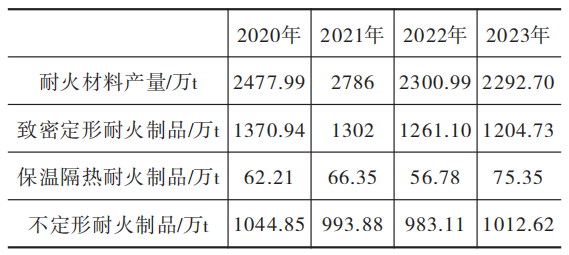 表3 2020—2023年我国耐火材料下游产业消费情况