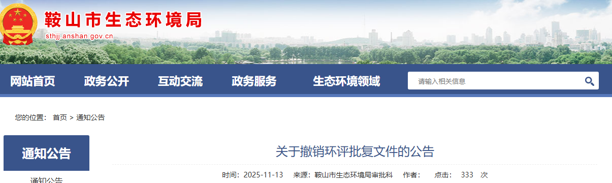现建设单位申请撤销该环评批复,依据《中华人民共和国行政许可法》第六十九条规定,经研究,我局依法决定撤销《海城市轩镁耐火材料有限公司改扩建项目环境影响报告表的批复》(鞍行审批复环〔2023〕14号),现予以公告。