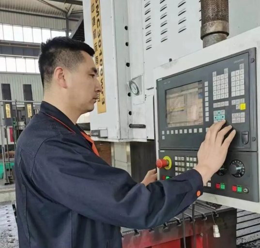 11月14日上午9时许,营口锻压机床有限责任公司机加车间内工人忙碌,机器轰鸣。一台10米数控龙门铣床旁,工艺室主任殷晓鹏正在为出口印度的4000吨级数控电动螺旋压力机加工零件。