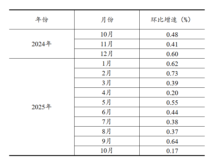 根据季节调整模型自动修正结果,对2024年10月至2025年9月份规模以上工业增加值环比增速进行修订。修订结果及2025年10月份环比数据如下: