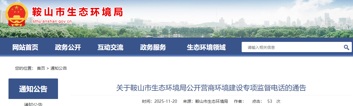 为进一步畅通监督渠道,鞍山市生态环境局设立营商环境建设专项监督电话,广泛收集相关问题线索。对于企业及市民在生产生活中发现的生态环境领域落实政策规定打折扣、搞变通、人为设置障碍;对待群众诉求态度生硬、推诿扯皮、敷衍塞责;利用职权或工作之便“吃拿卡要”等问题,欢迎予以反映,我们将坚持“零容忍”态度,坚决查处,绝不姑息。