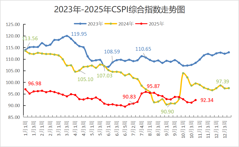 1-10月份,CSPI平均值为93.50点,同比下降9.91点,降幅为9.58%。