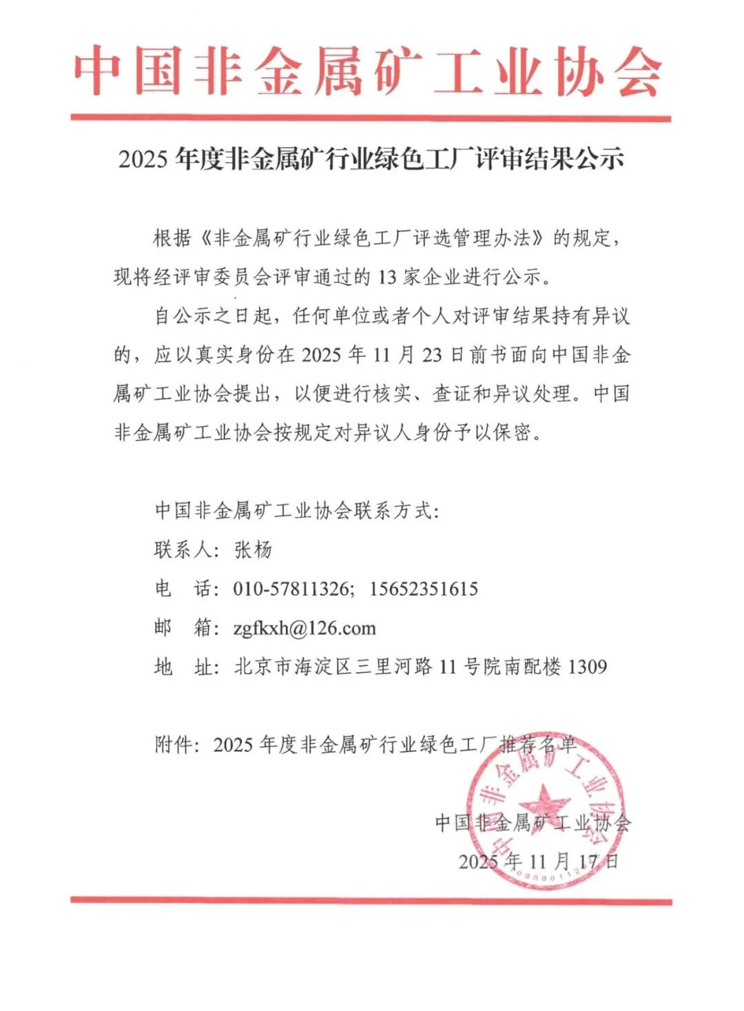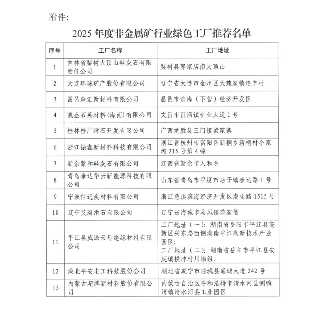 2025年度非金属矿行业绿色工厂评审结果公示
