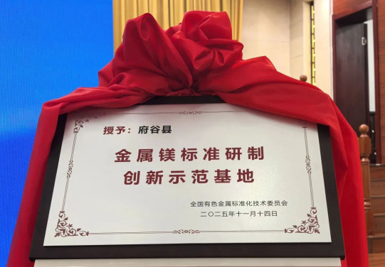 2025年11月14日,“府谷镁产业高质量发展专家委员会”成立大会在府谷县隆重召开。会上,全国有色金属标准化技术委员会正式授予府谷县“金属镁标准研制创新示范基地”称号,为镁产业标准化、高质量发展注入强劲动力。