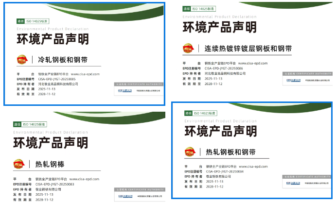 环境产品声明(EPD)是一种基于生命周期评价(LCA)的规范化和标准化的Ⅲ型环境声明,它详细披露了产品从原材料采集、生产、使用到废弃处理全生命周期中的环境影响。在绿色低碳发展背景下,EPD是推动钢铁产品走向国际市场的“绿色通行证”,更是下游制造业企业践行绿色采购、履行社会责任的重要依据,其权威性和公信力已得到国内外市场的广泛认可。此次4款产品EPD报告的发布,是敬业集团坚定不移践行绿色低碳高质量发展战略的关键成果。它不仅标志着敬业集团在产品全生命周期环境绩效透明化建设上取得关键进展,更为客户绿色采购提供权威依据,助力上下游企业共同构建绿色供应链,实现产业协同低碳发展。