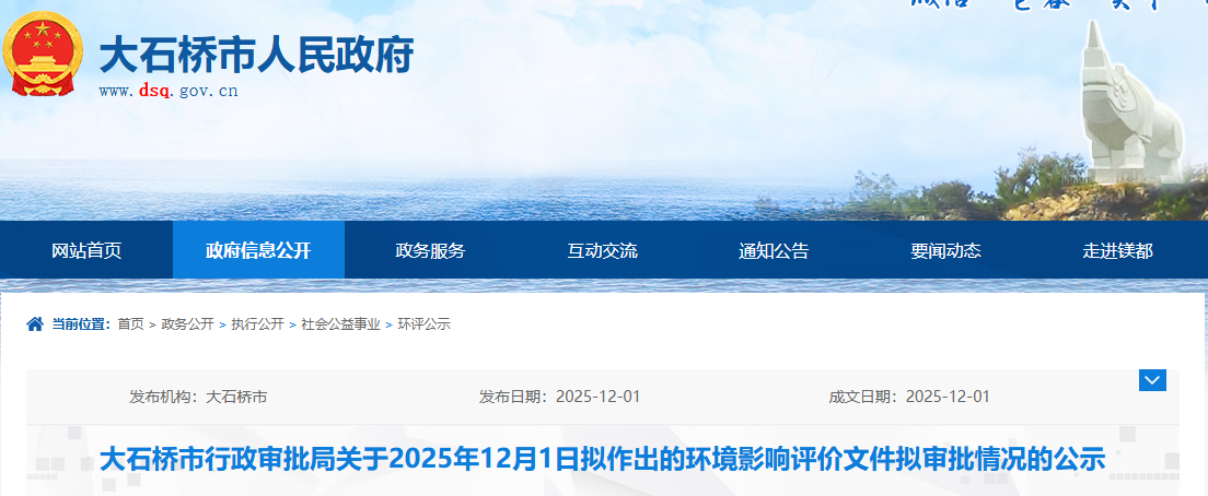 根据建设项目环境影响评价审批程序的有关规定,经审查,我局拟对1个项目环境影响评价文件作出审批意见。为保证此次审查工作的严肃性和公正性,现将拟作出审批意见的环境影响评价文件基本情况予以公示,公示期为2025年12月1日-2025年12月5日(5个工作日)。