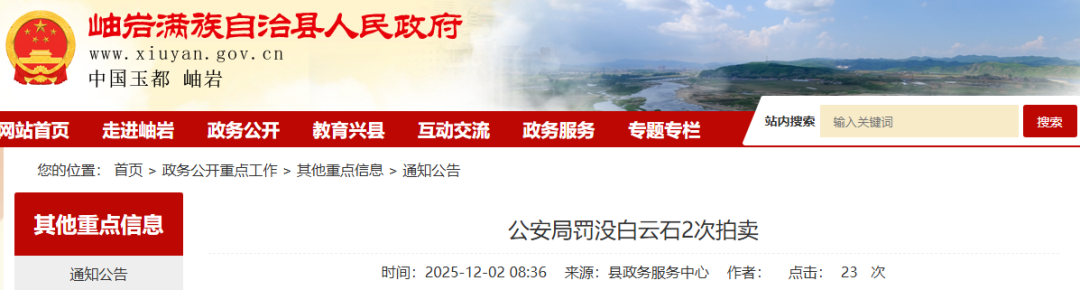 受委托,岫岩满族自治县产权交易中心有限责任公司(鞍山市金鸣拍卖有限公司)定于2025年12月9日上午10时在中拍平台依法对下列标的进行第二次拍卖: