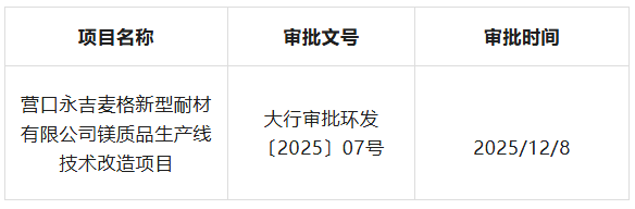 附件:关于营口永吉麦格新型耐材有限公司镁质品生产线技术改造项目环境影响报告表的批复