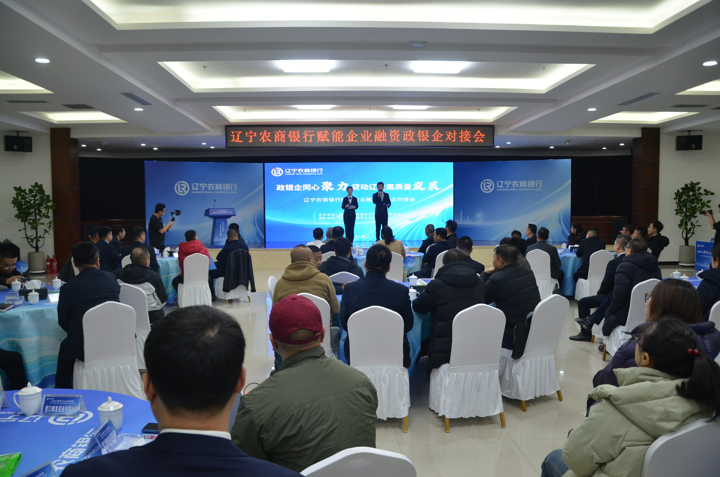 市领导及开发区领导孙本民、车达、姜运军、岳玉波,辽宁农商行营口中心支行、大石桥支行领导及开发区40余家企业负责人出席会议。