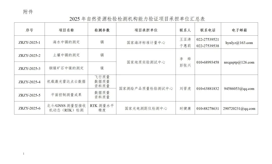 为提高检验检测机构技术能力,支撑自然资源事业高质量发展,根据《检验检测机构资质认定管理办法》《检验检测机构监督管理办法》《检验检测机构能力验证管理办法》《自然资源部 国家市场监督管理总局关于加强支撑自然资源事业高质量发展的检验检测能力建设的通知》等有关规定和要求,现组织开展2025年自然资源检验检测机构能力验证工作。有关事项通知如下: