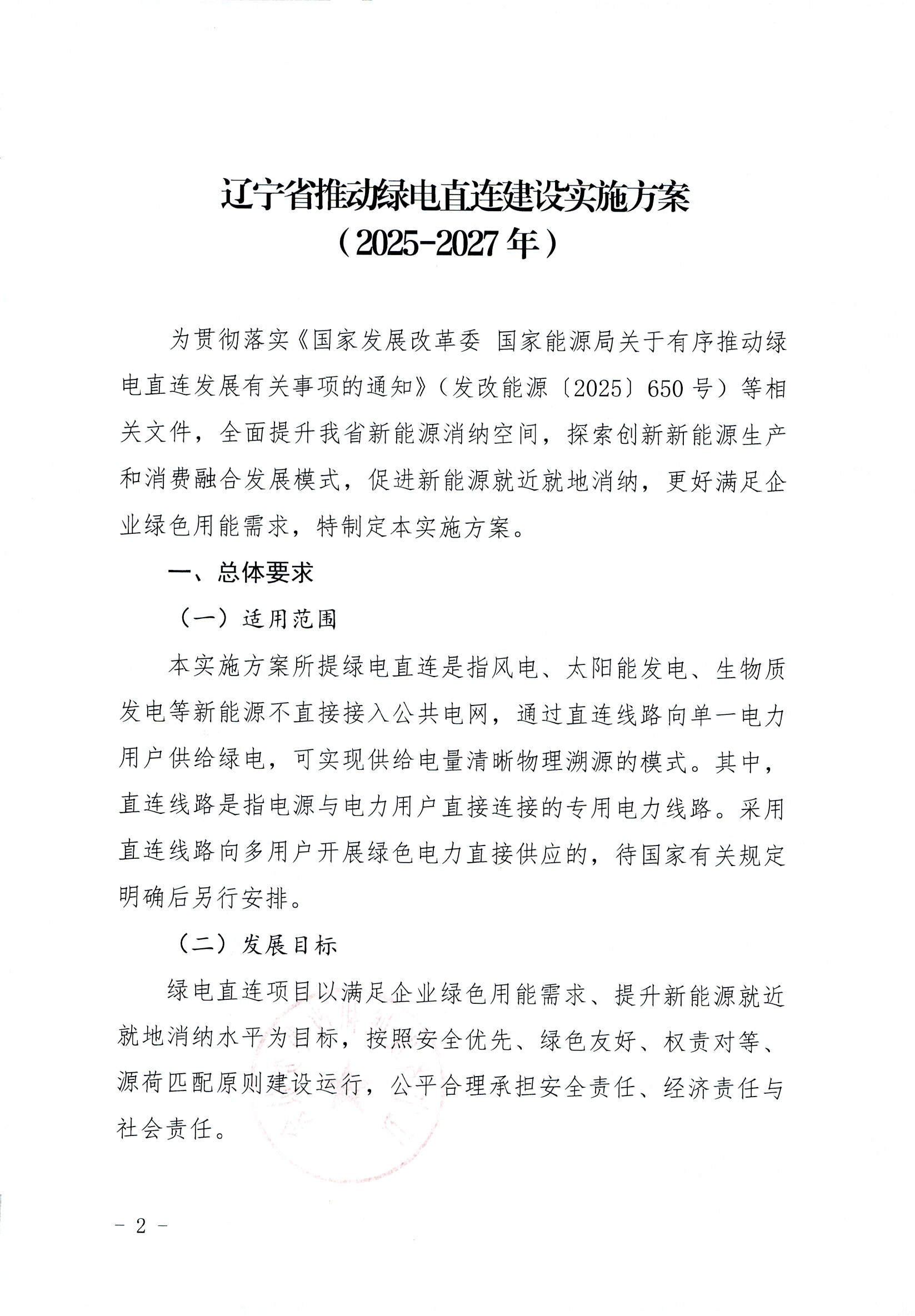辽宁省发改委关于印发《辽宁省推动绿电直连建设实施方案(2025-2027年)》的通知