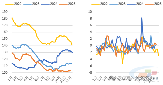 图9:2022~2025年各周价格环比(%)