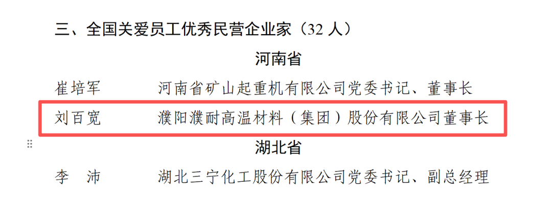 此次获奖,是濮耐股份继2023年荣获“全国就业与社会保障先进民营企业”国家级荣誉后,再次斩获的重磅殊荣。这份荣誉,既是对刘百宽本人以人为本管理理念的高度赞誉,更是对濮耐股份在促进地方经济社会发展、助力共同富裕方面发挥积极作用的充分肯定。濮耐股份将以此为契机,珍惜荣誉,再接再厉,持续发挥标杆引领作用,坚定发展信念,勇担社会责任,为扎实推进中国式现代化建设、助力社会和谐发展与民族复兴伟业注入更多坚实力量。