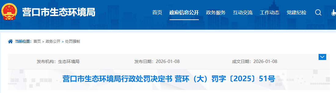 营口市环保整改一直在持续进行中,就在近日,营口市生态环境局在官网发出公告,对南楼经济开发区一轻烧氧化镁生产企业环境违法行为的行政处罚进行了公示。