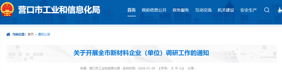 按照辽宁省工业和信息化厅《关于开展全省新材料企业(单位)调研工作的通知》(以下简称“通知”,附件1)要求,请你单位立即开展辖区内新材料企业(单位)调研工作,按照文件要求,要重点做好以下三方面工作: