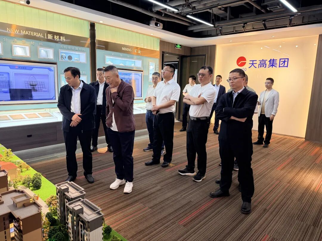 签约仪式前,焦利刚总经理一行参观了天高集团展览厅,详细了解天高集团发展历程、产业布局及技术创新成果。随后,双方共同观看企业宣传片,并围绕矿产资源开发、钢铁生产运营及产业链协同等话题交换意见,进一步加深对彼此核心优势的认识。