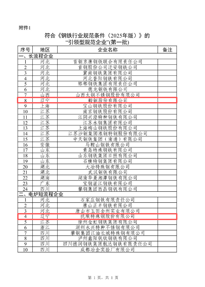 1.符合《钢铁行业规范条件(2025年版)》的“引领型规范企业”(第一批)