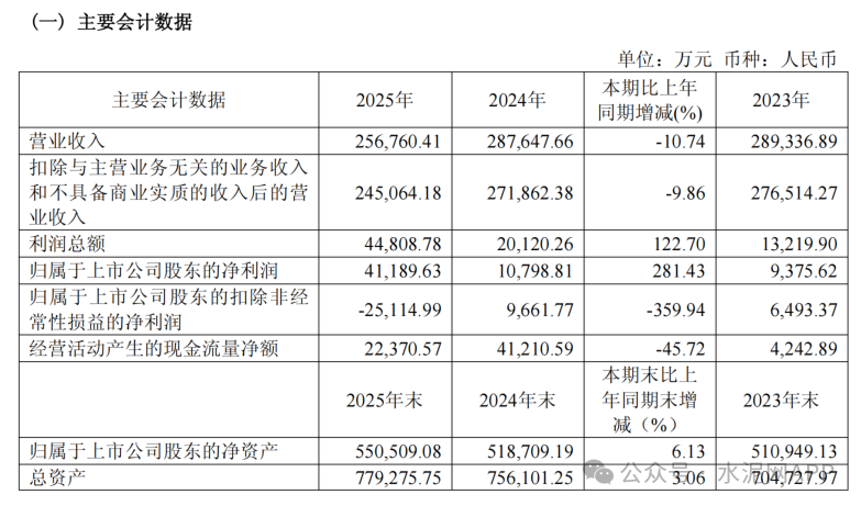 4月13日晚间,尖峰集团公告称,2025年公司实现营业收入25.68亿元,同比减少10.74%;归属于母公司所有者的净利润4.12亿元,同比增长281.43%;归属于上市公司股东的扣除非经常性损益的净利润为-2.5亿元,同比减少359.94%。