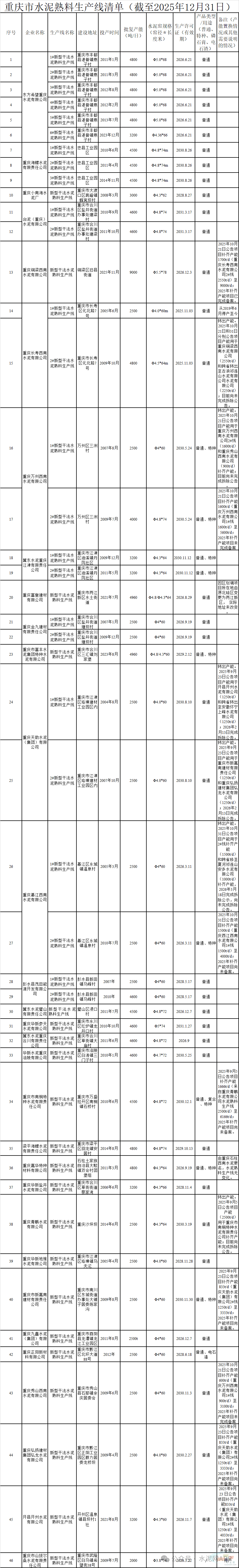 日前,重庆市经济和信息化委员会公示重庆市水泥熟料生产线清单更新情况。