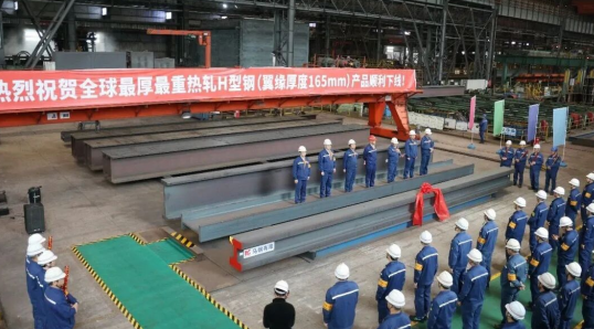 4月21日,马钢有限H型钢产线攻克行业技术难题,全球最厚最重热轧H型钢产品顺利下线。此次下线的热轧型钢产品翼缘厚度达165毫米,米重1509千克,是当前全球最厚、最重的热轧H型钢,马钢有限也成为全球唯一具备该规格产品供货能力的企业,彰显出企业顶尖的装备技术与先进工艺水平,助力中国钢铁领跑全球高端型材领域。