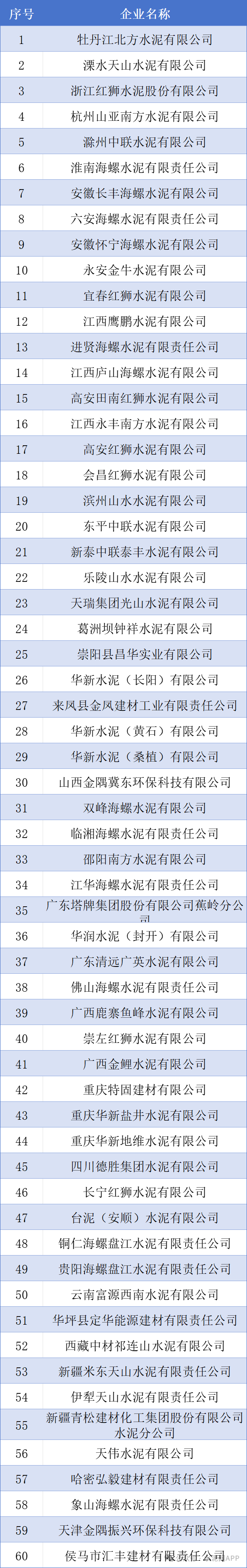 其中60家水泥企业入选2025年度国家级绿色工厂名单: