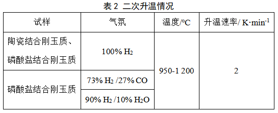 1、影响磷酸盐结合耐火材料损毁的主要因素是气氛成分。H2气氛测试虽有助于基础研究,但与工业实际工况的混合气体相比,材料损毁速率偏高,试验中质量损失数据也验证了这一点:H2气氛中为0.32 %,H2/CO混合气氛中为0.26 %,H2/H2O气氛中为0.03 %。